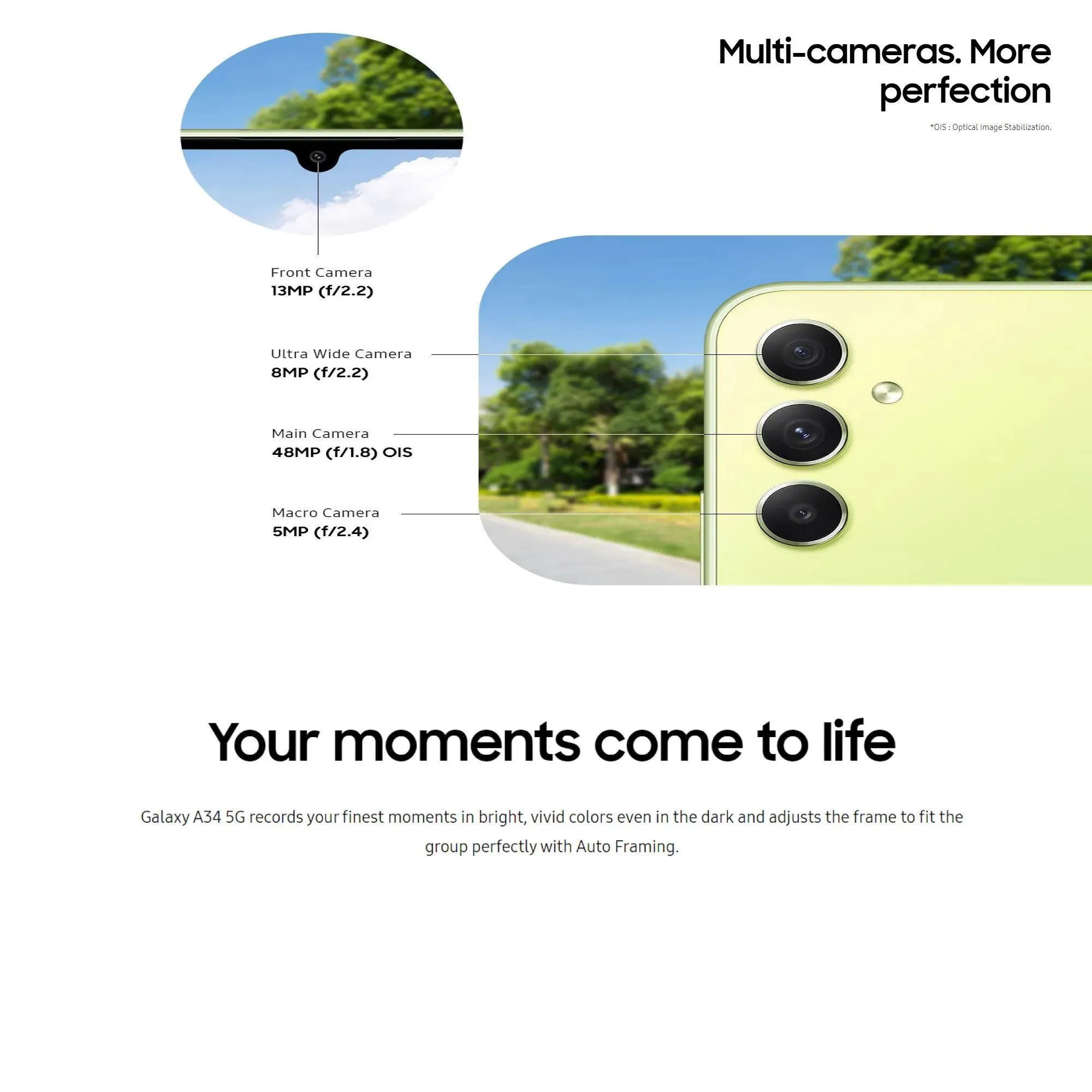 三星Galaxy A34 5G 128GB Rom+8GB Ram/1年本地三星保修(免费:钢化玻璃+后盖)
