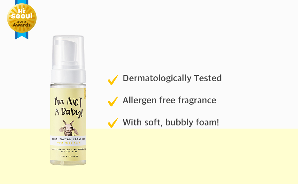 我不是婴儿!山羊奶儿童洗面奶150ml经皮肤科医生测试l无残忍l无过敏原香味l山羊奶l适合儿童敏感肌肤