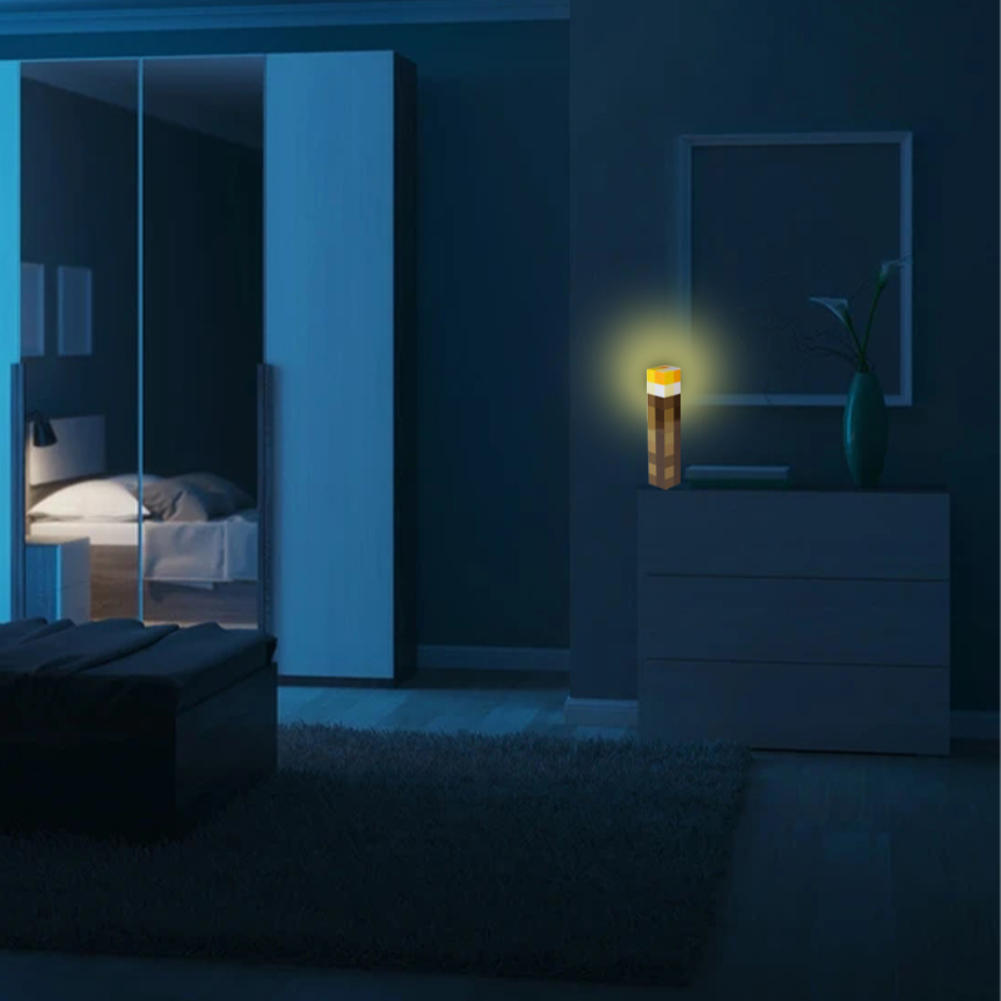 PREPARE FOR ADVENTURE: Stop monsters and hostile mobs from spawning with our Minecraft Redstone Light-Up Torch. This versatile piece of Minecraft bedroom decor can be used as a standing lamp, night light, mountable wall decor and much more.