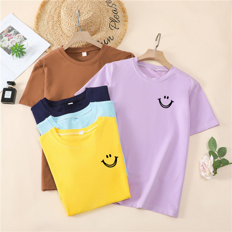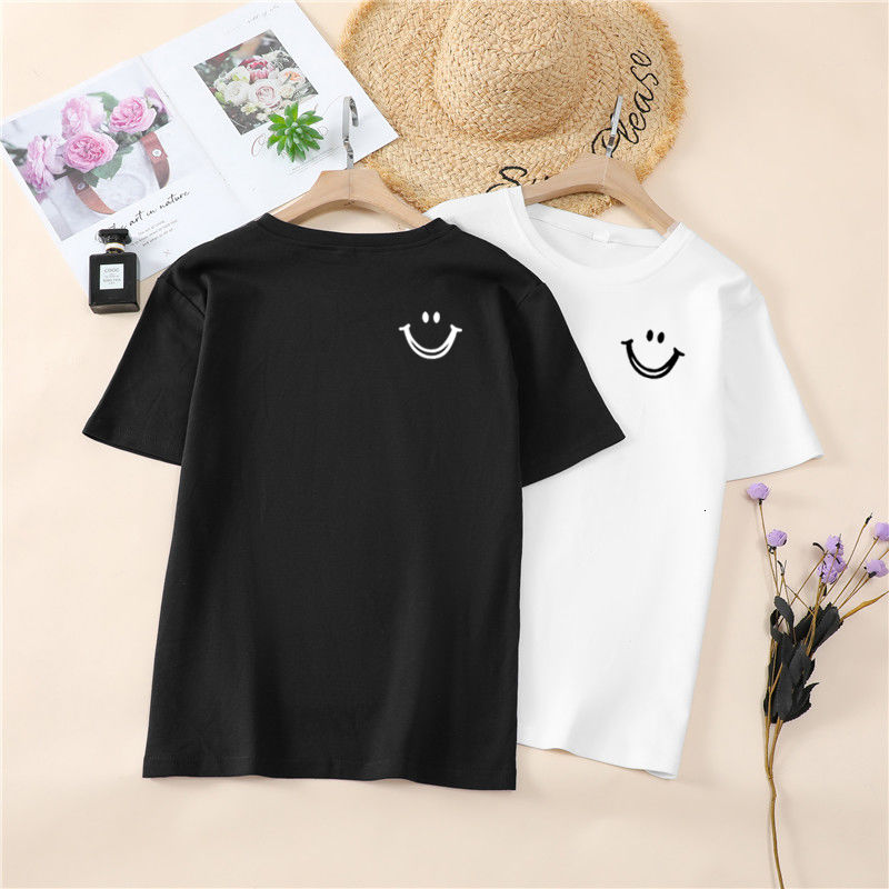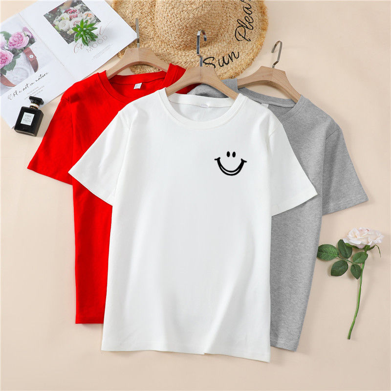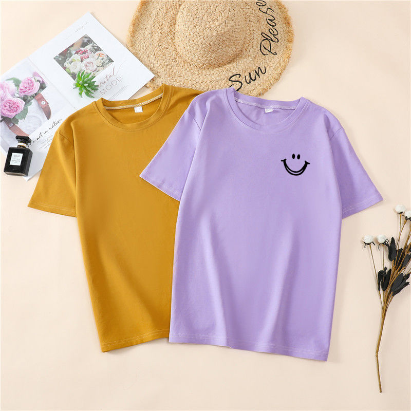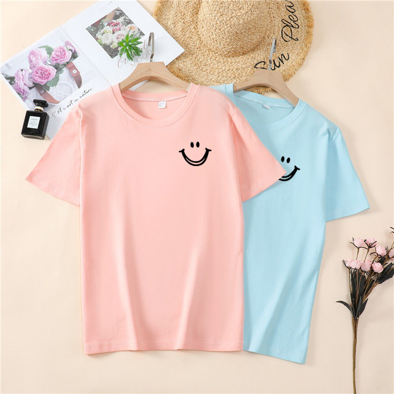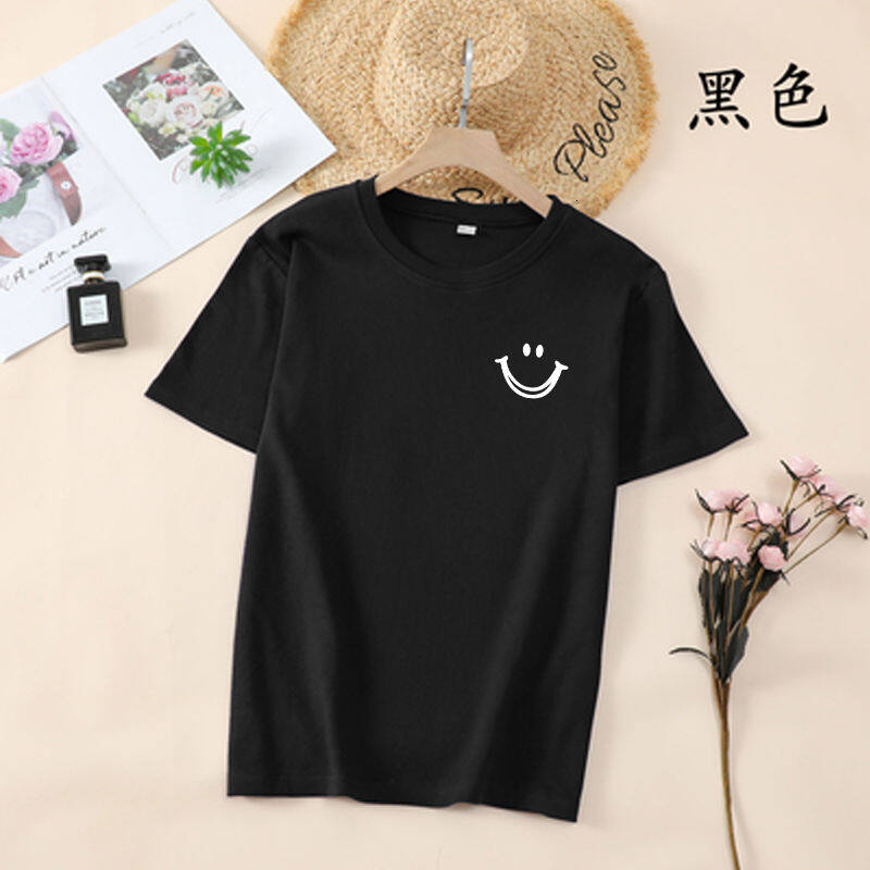 韩国T恤女士优雅舒适微笑T女士短袖卡通衬衫