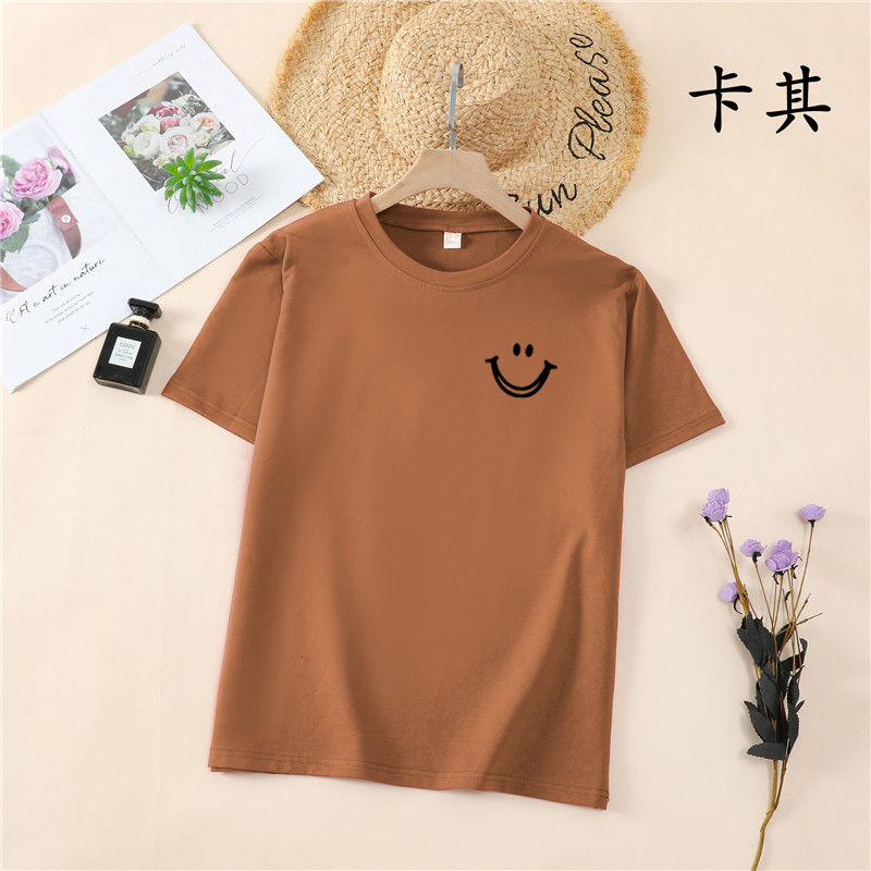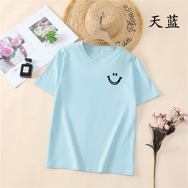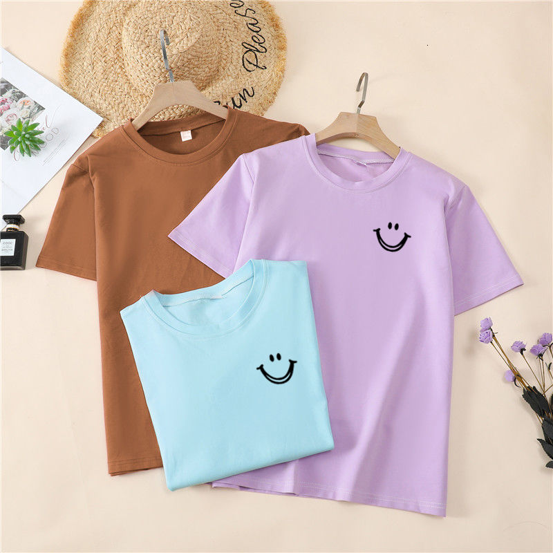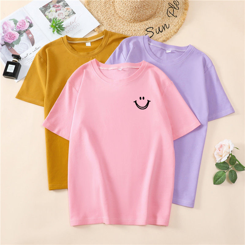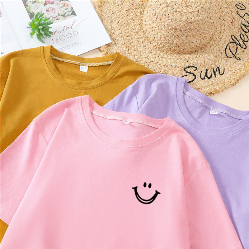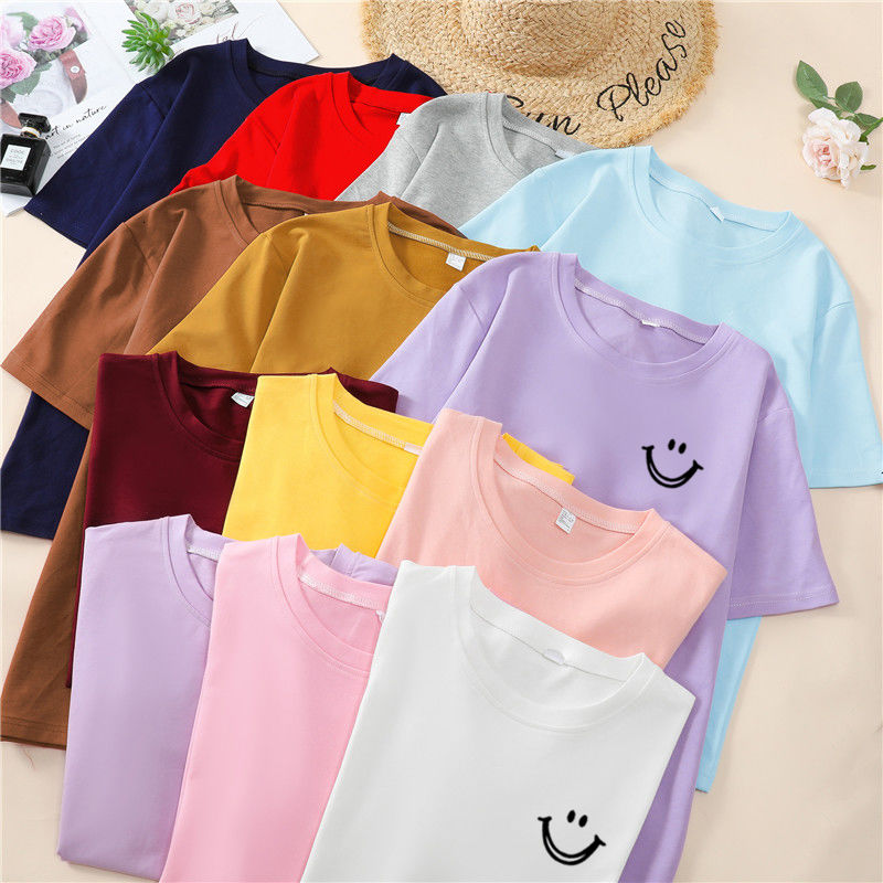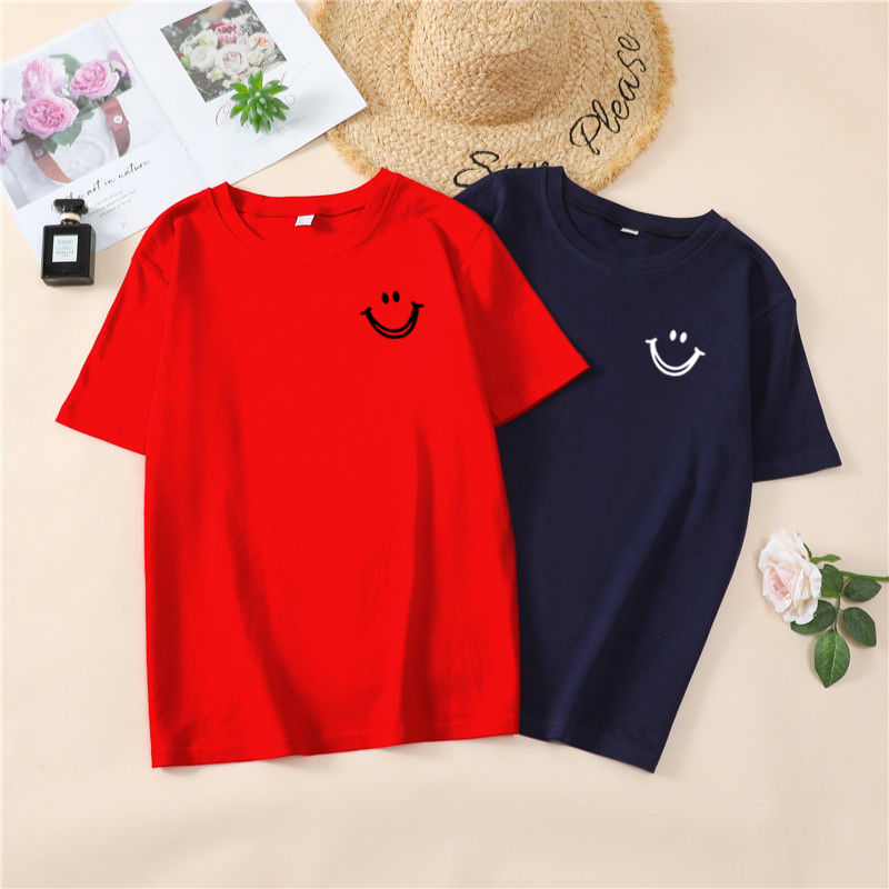 韩国T恤女士优雅舒适微笑T女士短袖卡通衬衫